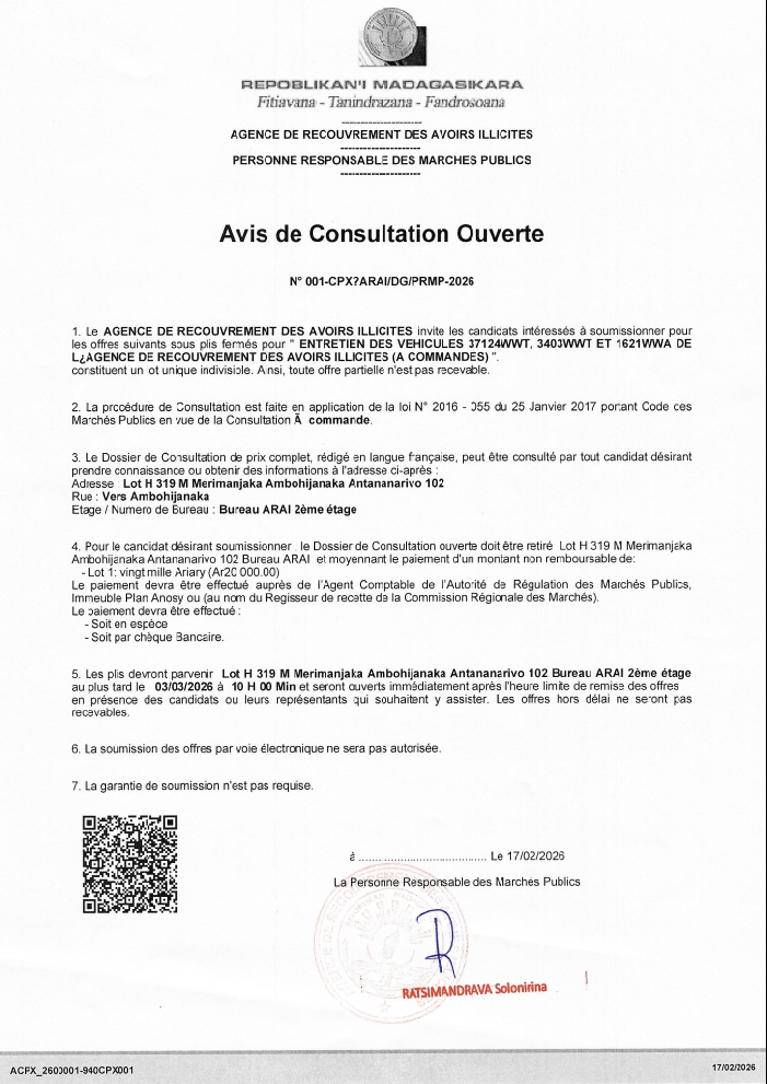 - Catégorie : Appel d'offre